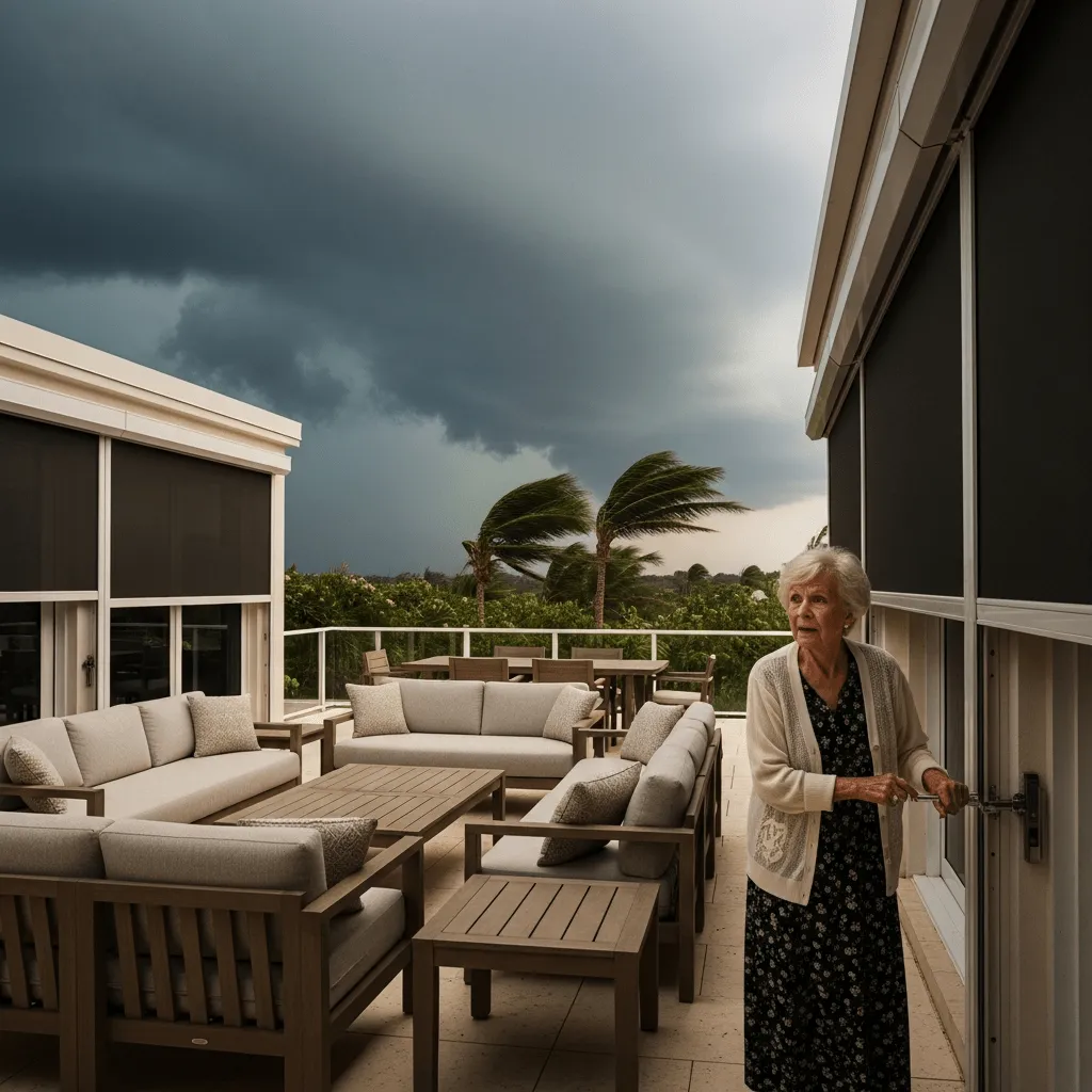 The storm warning issues while you're traveling for business—your $300K outdoor furniture and hurricane screens sit undeployed because operating them remotely is impossible. Your 70-year-old mother visits and can't physically crank down sun shades during brutal afternoon heat.